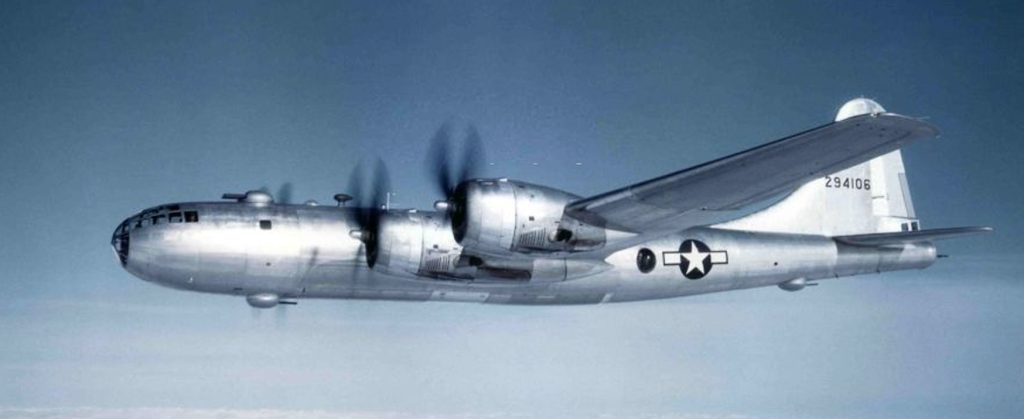 The name “Superfortress” was derived from that of its well-known predecessor, the B-17 Flying Fortress. Although designed as a high-altitude strategic bomber and initially used in this role against the Empire of Japan, these attacks proved to be disappointing; as a result, the B-29 became the primary aircraft used in the American firebombing campaign and was used extensively in low-altitude night-time incendiary bombing missions. One of the B-29’s final roles during World War II was carrying out the atomic bomb attacks on Hiroshima and Nagasaki. (Source: Wikipedia. Click here for more information about the B-29 Superfortress)