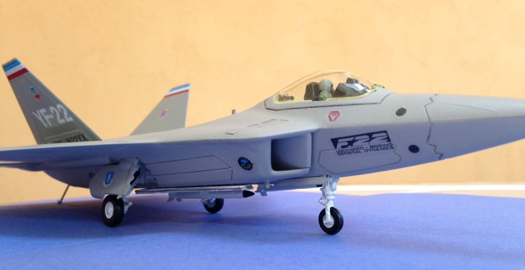 This is a nice-looking plane. The YF-22 was a prototype airplane. It was designed to be the most sophisticated and superior tactical fighter in the sky. Two prototypes were built and it won the contest against the Northrop YF-23 and entered production as the Lockheed Martin F-22 Raptor. The YF-22 has similarities in aerodynamics with the F-22 but there are some differences in the position and design of the cockpit as well as the tail fins and wings.