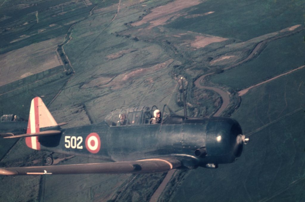 The black & white picture obtained from the Aero-Photography Service of the Peruvian Air Force shows a North American AT-6 at the Air Force base of “Las Palmas” in Lima, Peru.