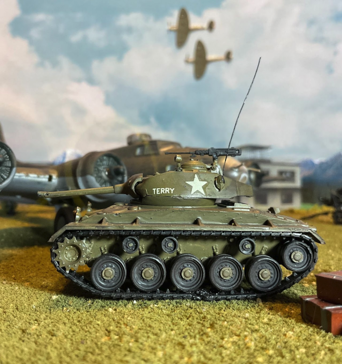 The Light Tank M-24 Chaffee was an American light tank that entered service during the later stages of World War II. Designed to replace the M5 Stuart, the M-24 Chaffee offered significant improvements in firepower, armor, and mobility. The tank was armed with a 75mm M6 gun, which was a major upgrade from the 37mm gun used on its predecessor, providing it with the ability to engage enemy armor more effectively. Despite its increased firepower, the M-24 maintained the speed and agility that were crucial for reconnaissance missions and rapid maneuvers on the battlefield.