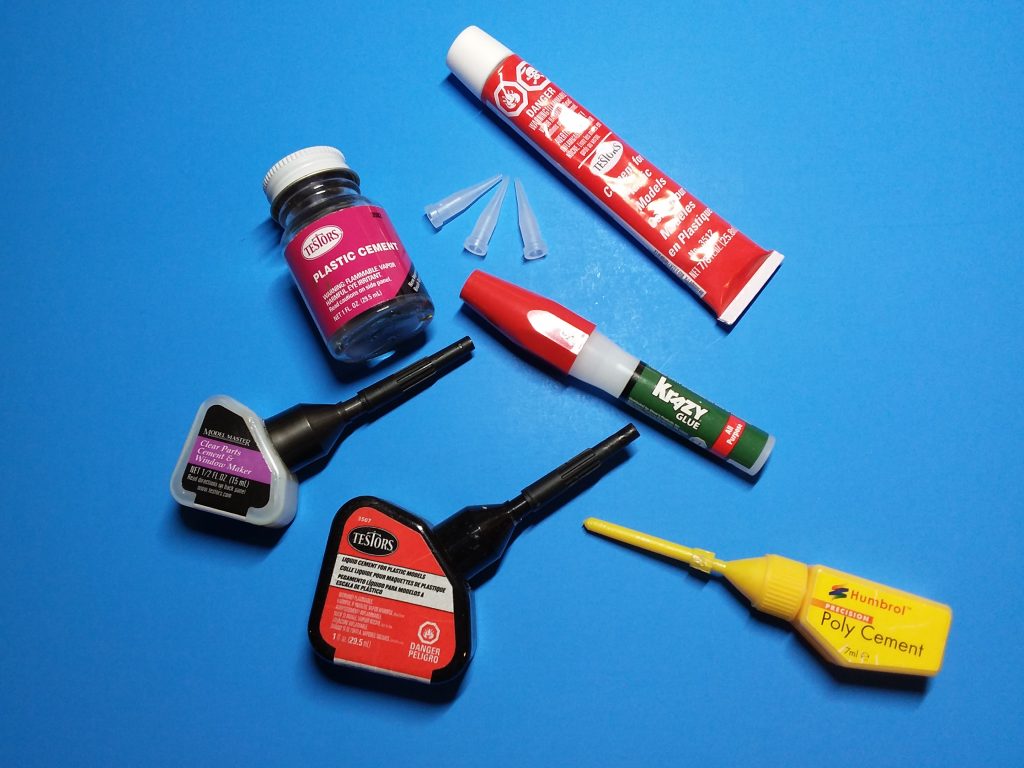 Also known as “Cement,” it is used to adhere to the plastic parts of a model kit. It comes in different types: