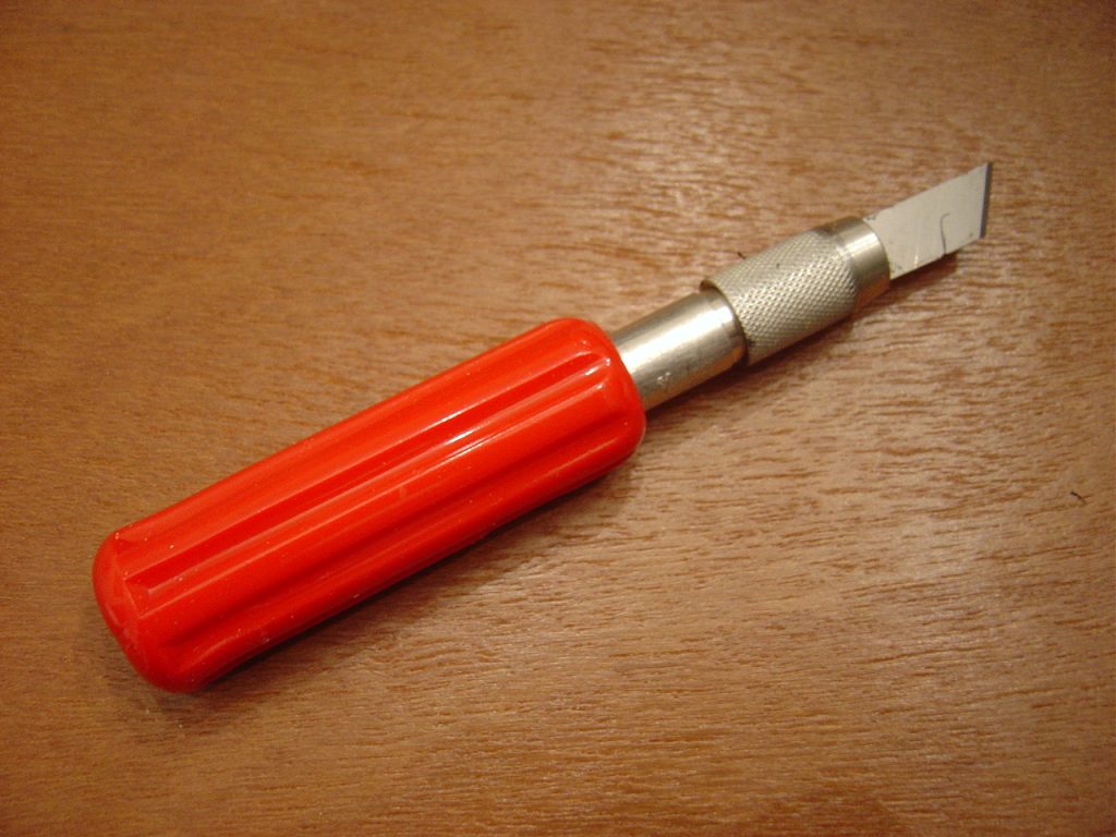 The “X-Acto knife,” or “Hobby Knife, “is one of the essential tools. Having a good set of different blades and handles is a good idea. Always wear protective safety glasses when using edged tools.